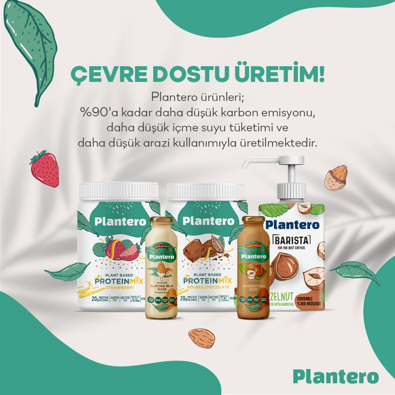 Plantero insanların iyi hissetmesi, doğayı koruması ve iyilik yapabilmesi için alternatifler yaratma amacıyla kurulmuş, vegan tüketici ürünleri markasıdır. Sadece bitkisel kaynaklı gıdalar ile oluşturulan Plantero ürünleri hayvansal hiçbir gıda içermez, içermeyecektir. Plantero ürünleri %90'a kadar daha düşük karbon emisyonu, içme suyu tüketimi ve arazi kullanımı ile çevre dostudur. Her 1 cam şişe Bitkisel Süt Konsantresi sayesinde çok zor ayrıştırılan 6 adet uht-karton süt ambalajının üretilmesinin önüne geçilmektedir. Bitkisel protein karışımlarımız, temel besin kaynaklarımızdan olan proteinlerde hayvansal ürünlere olan bağımlılığı ortadan kaldırmaktadır. Planteronun tüm ürünleri gıda tedarik zincirlerinin daha sürdürülebilir hale gelmesinde etkin rol oynamaktadır.
