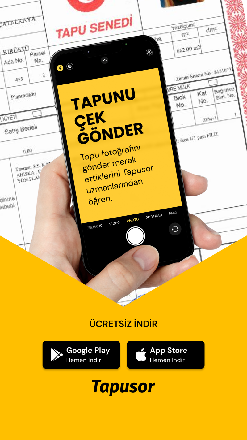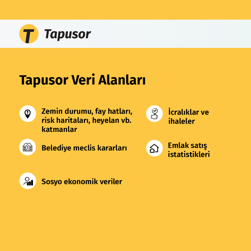 www.tapusor.com adresinden veya mobil cihazlardan Tapusor mobil uygulamasını indirerek kendi gayrimenkulleriniz için inceleme yapabilir hem Tapusor'a hem de gayrimenkule yatırım kararı vermeden önce uygulamalarımızı test edebilirsiniz.