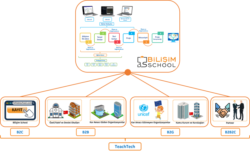 Bilişim School; bünyesinde bulundurduğu ve birbirine entegre çalışan Code-Lab, Cyber-Lab ve Öğrenme Yönetim Sistemi ile 8-18 yaş gençlerin Bilgisayar Bilimleri konularında bilgi ve becerileri kazanabilecekleri ve pratik yaparak pekiştirebilecekleri bir öğrenme platformudur.