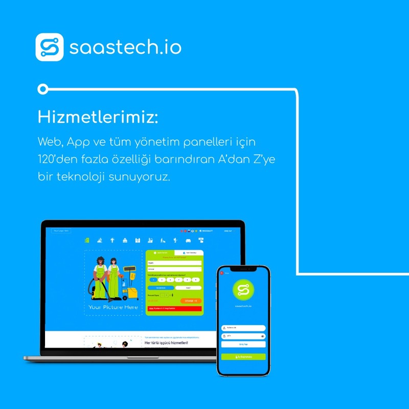saastech.io; temizlik, tesis yönetimi, bakıcılık, nakliye, ustalık hizmetleri, güvenlik gibi servis ve hizmet sektörleri için A'dan Z'ye gerekli tüm teknolojik alt yapıyı sağlayarak, işletmelerin online dünyaya hızlıca geçerek iş yapmasını sağlar. Sipariş mekanizmasına sahip WEB sitesi, müşteriler için ayrı personeller için ayrı mobil uygulamalar (IOS, ANDROID), 120'den fazla özelliğe sahip CRM - Backend yönetim paneli, muhasebe, ödeme sistemleri ve personel takibi gibi bir işletmenin ihtiyacı olan tüm özellikleri sunar.