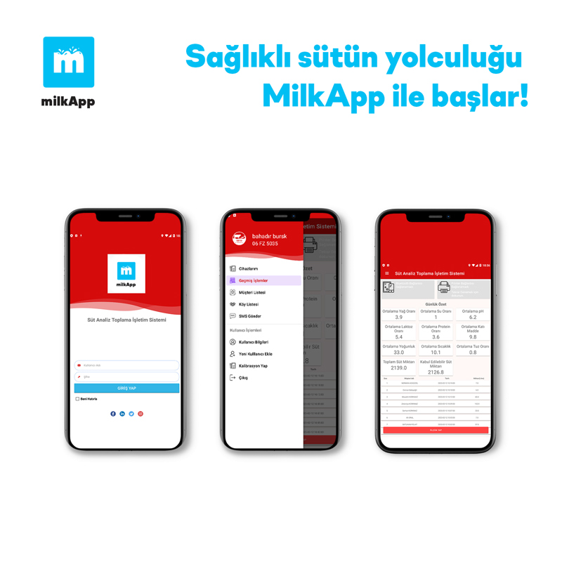 Çiğ sütün sağlıklı kalabilmesi için sağım sonrası hızlı şekilde soğutuculu tanklara gönderilmesi gerekmektedir. Ancak piyasadaki cihazlar ile her müstahsilin sütünün analiz süresi 60 ile 90 saniye arasında değiştiği için süt sağlığını tehdit etmektedir. Tasarımı gerçekleştirilmiş olan hızlı analiz cihazı ile piyasadaki ürünlerin aksine 8 ile 10 saniye arasında ölçüm gerçekleştirebiliyoruz. Hazırlanan entegre yazılım ile bu cihaz eşleştirilmiş olup sağımdan sofraya kadar olan süreçte süte kimlik kazandırılmasını ve takip edilebilir olmasını sağlıyoruz. Ayrıca MilkApp sütün kimyasal yapısının bozulmadan fabrikaya kadar taşınması sürecinin yönetilmesini ve takip edilmesi açısından kullanıcıyı bilgilendirmektedir.
