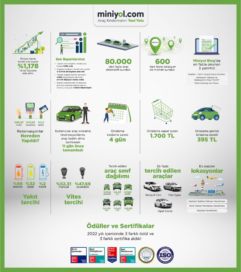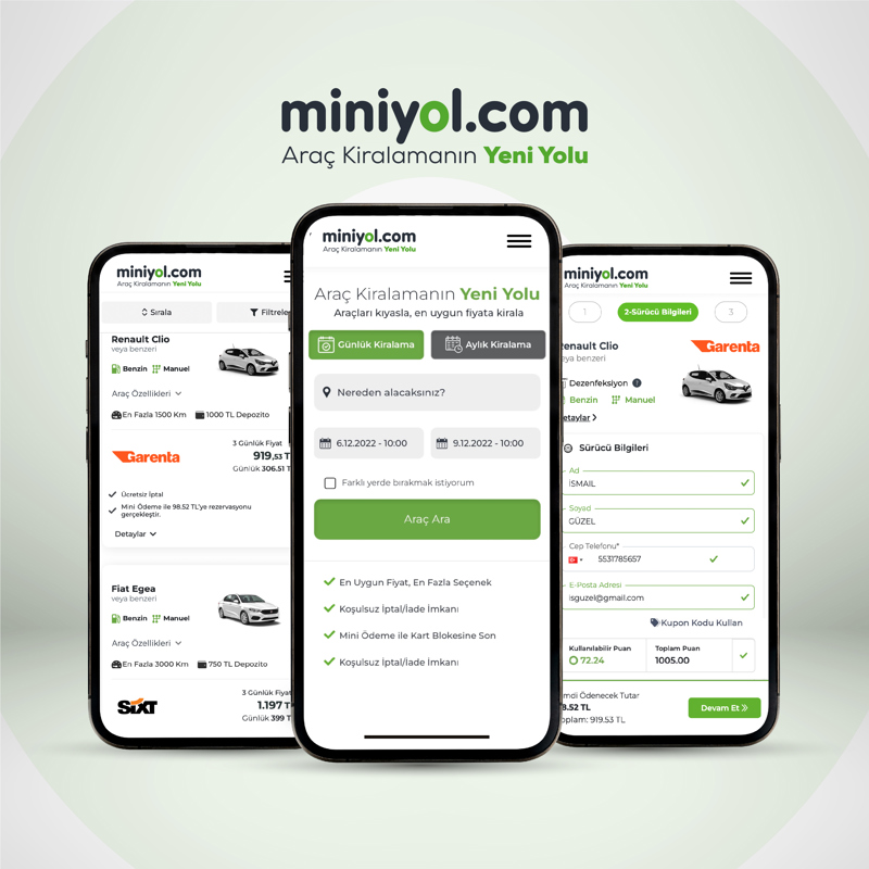 Araç kiralama hizmeti veren firmaların miniyol sistemlerine entegre edilmesi ile miniyol.com web sitesi ve mobil uygulamaları üzerinden araç kıyaslama ve rezerve etme hizmeti veren platformdur. Platform üzerinde Sixt, Garenta, Europcar, Rentgo, Avec gibi ulusal ve bölgesel hizmet veren 80'den fazla firmanın 80.000'den fazla aracı yer almaktadır. Miniyol.com'u rakiplerinden ayıran temel farklılıkları ödeme yöntemleri, müşteri sadakat programları ve koşulsuz iptal, iade haklarıdır. Miniyol.com bir yıl gibi kısa sürede Türkiye'nin 2. online araç kiralama pazar yeri konumuna ulaşmıştır.
