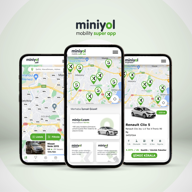 Miniyol Mobility Super App'in ilk aşaması olan günlük araç kiralama pazaryeri 2021 Haziran'da hizmete açılmış olup, +1.500.000 ziyaretçiye ulaşmış ve ilk 17 ayda 11.000.000 TL ciroya ulaşmıştır. Kullan-bırak araç kiralama hizmeti verecek olan Miniyol Express ve kişiden kişiye araç kiralama hizmeti verecek olan Miniyol Self ürünlerinin yatırım turunun tamamlanması ile birlikte 2023 yılında hayata geçirilmesi planlanmaktadır.