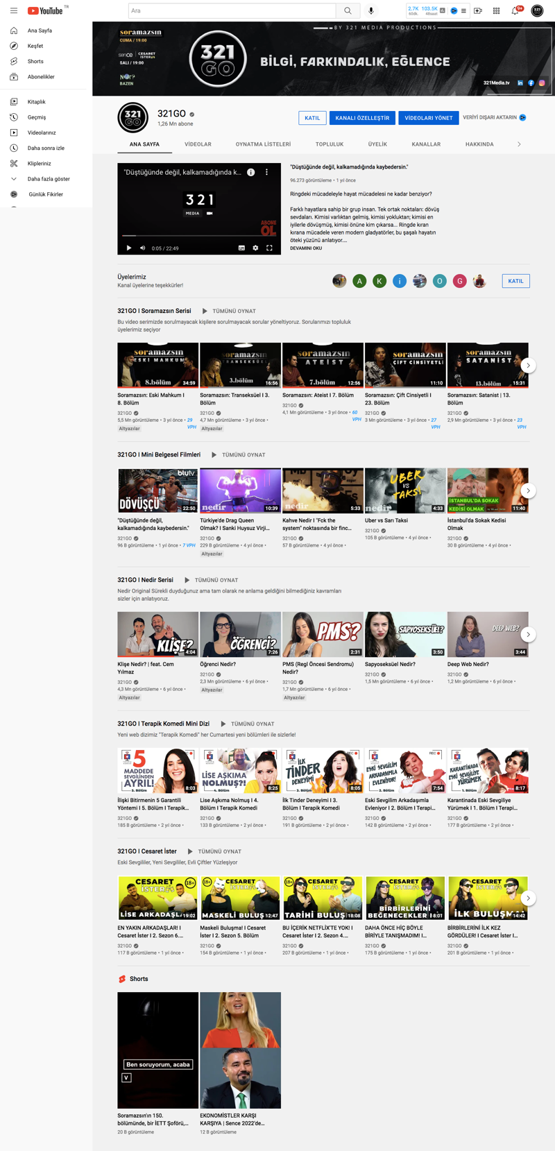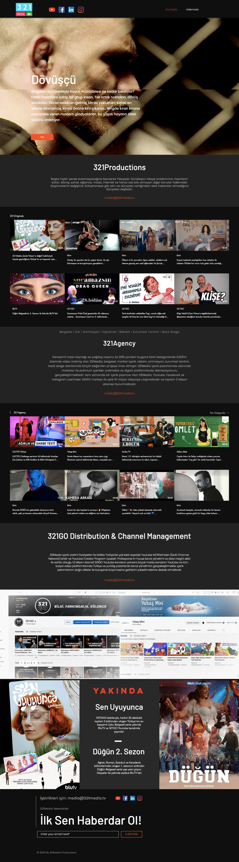 Dijital platformlara özel içerikler üretmek üzere kurulduk. Ürettiğimiz ve yayınladığımız içeriklerin Youtube panellerimiz üzerinden; izlenme, etkileşim, demografi, izlemelerin tamamlanma gibi datalarını detaycı bir yaklaşım ile inceleyerek ve izleyici alışkanlıklarını anlamlandırıp 321GO adını verdiğimiz Youtube kanalımızda fenomen Nedir ve Soramazsın video serilerimizle 300MM üzeri izlenme ve sadece Youtube'da 1.250.000 aboneye, tüm sosyal medya kanalarımızla 2 milyon takipçiye ulaştık. Kendi platformumuzda edindiğimiz bu tecrübeyi reklam verenlere taşıyarak Türkiye’nin alanlarında lider 10’larca markasının dijital içerik stratejisinden, içeriklerin üretimine ve dijital platformlarda yayına kadarki tüm süreçleri kapsayan video içerik çözümleri sunuyoruz. Markalara; teknoloji, otomobil, motor sporları, çizgi film, yarışma, bilgi kategorilerinde markalı içerikler üretiyor ve bu kanalların Youtube’un Türkiye’deki çok kısıtlı MCN (Multi Channel Network) partnerlerine açtığı gelişmiş CMS (content management system) panelleri üzerinden yönetimini gerçekleştiriyoruz. Bu şekilde hedef kitleleriyle eğlenceli ve faydalı içerikler üzerinden bağ kurmalarını sağlıyor ve aynı zamanda Youtube, Facebook ve Instagram başta olmak üzere tüm dijital platformlarda varlıklarını istikrarlı şekilde büyütmelerine destek oluyoruz. Faaliyet alanımızı bunlara ek olarak TRT Belgesel gibi lineer kanallara ve hızla büyüyen BluTV, Turkcell TV+ gibi OTT platformlara özel orijinal belgesel serileri, programlar, diziler üreterek genişlettik. Hak sahibi olduğumuz içeriklerin tüm bu süreçte artması ve güçlü bir içerik kütüphanemizin oluşması ile 2022'de içeriklerimizin farklı dillerde dublajlarını üretmeye başladık. Türkiye'de başarılı olmuş ve tüm dünyanın ilgisini çekeceği zamansız 1.000'lerce dublajlı içeriğimiz ile MENA bölgesinden başlayarak 321GO Youtube kanallarımızı farklı diller için açıyor ve buradaki başarımızı global Youtube izleyicisine taşıyor olacağız.