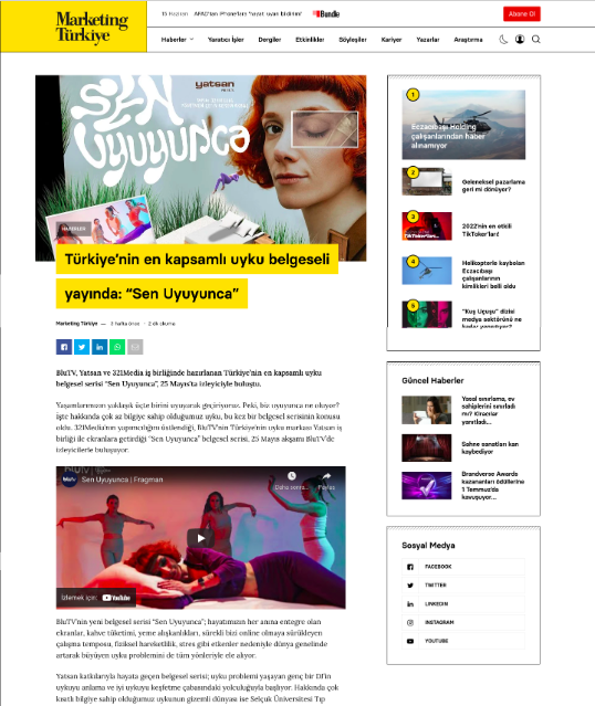 2022 yılında katıldığı 321Media bünyesinde; BluTv'de yayınlanan "Sen Uyuyunca" belgesel serilerinde Uygulayıcı Yapımcı olarak yer aldı.