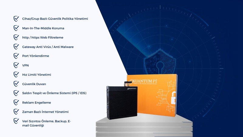 Kuantum Siber Güvenlik tarafından geliştirilen Kuantum Pi, Türkiye'nin ilk ve tek patentli güvenlik duvarıdır. Kuantum Pi farklı teknolojik özellikleri üzerinde barındıran bir siber güvenlik yazılımıdır.