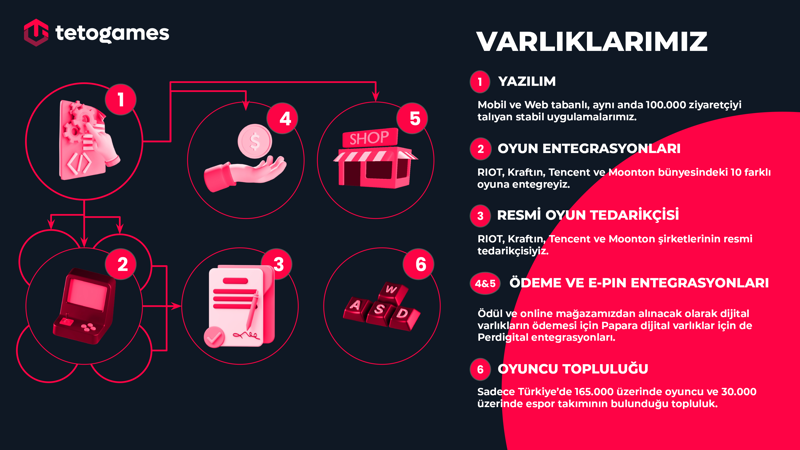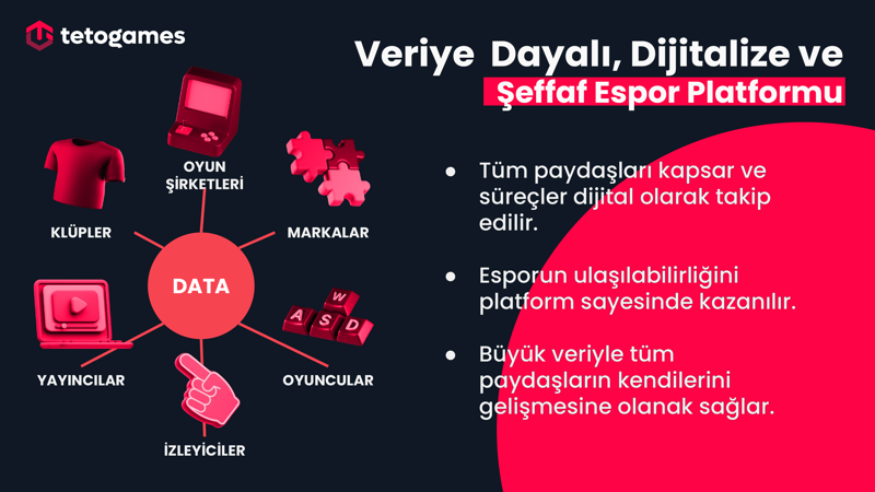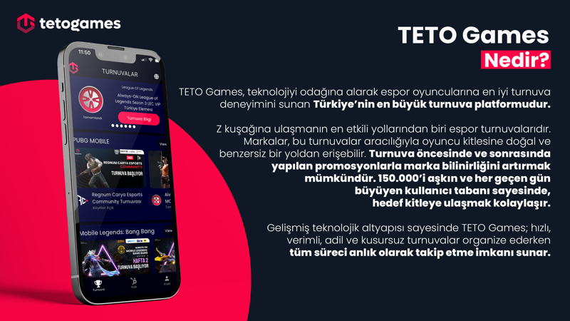 TETO Games, 165.000’in üzerinde onaylı oyuncuyla Türkiye’nin en büyük dijital espor oyuncusuna ve gamer havuzuna sahip platformudur. Bugüne dek Riot Games, Tencent, Krafton ve Moonton gibi dünya devlerinin Vendor listesinde yer almış, Türkiye lisanslı organizasyonlarında aktif rol almış; 1.000’den fazla turnuva düzenleyerek kullanıcılarına sürdürülebilir rekabet deneyimi sunmuştur. TETO Games, sadece oyunculara değil, oyun firmalarına ve markalara da entegre çözümler sunan profesyonel bir ekosistemdir.