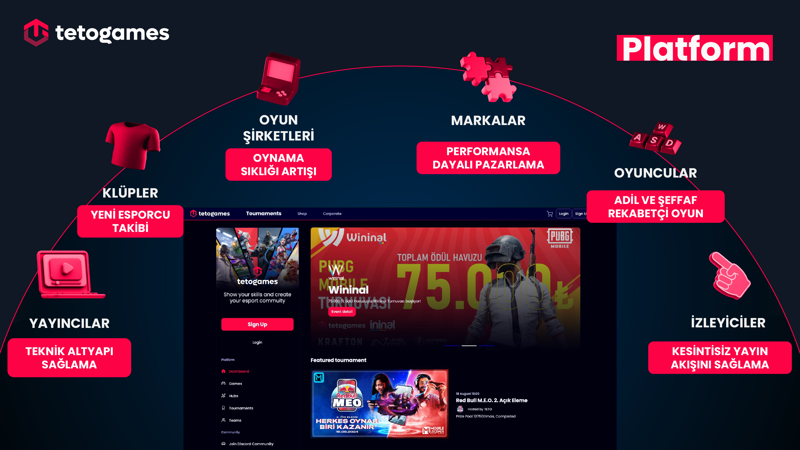 TETO Games, hem bireysel oyunculara hem de kurumsal iş ortaklarına uçtan uca entegre bir turnuva platformu sunar. Platformun temel bileşenleri şunlardır: