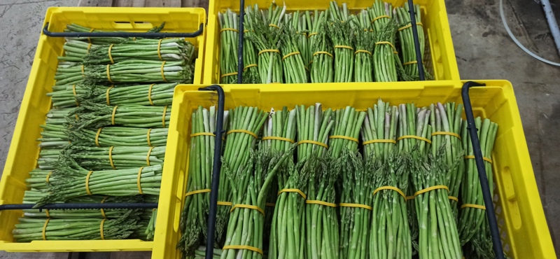 Kuşkonmazın başarılı bir şekilde üretilmesi, belirli bir toprak özellikleri, iyi drenaj ve doğru sıcaklık aralığı gibi katı yetiştirme koşulları gerektirir. . Üçüncü yıldan itibaren, sürgünler tüketilmek üzere hasat edilebilir. Ortaya çıkan sürgünlerin hasadı yalnızca belirli bir süre içinde yapılmaktadır. Hasadın yapılma süresi bitki yaşına bağlı olarak 3-12 hafta aralığındadır. Hasat süresi çeşitli tekniklerle 100 güne kadar uzatılabilir. Bitkinin bir sonraki kış boyunca hayatta kalması ve gelecek yılın sürgünlerini üretmesinde fotosentez ürünlerini depolaması için yapraklı bir taç üretmesine izin verilmesi gerekir. Kuşkonmaz bitkisindeki verim miktarı bir önceki yılın köklerinde biriken karbonhidrat oranına bağlıdır. Hasadı bitirme kararı bu kökler üzerinde yapılan testler ile belirlenir.