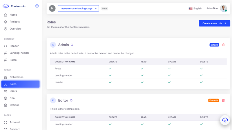 Contentrain’in bir çok rakibinden farklı olarak sunduğu yetkilendirme sisteminin esnekliği sayesinde her ekip üyesi için farklı yetkiler atanabilir, bu sayede proje içerikleri için gizlilik ve güvenlik en üst seviyede sağlanabilir. Günümüzde globale açılması gereken web projelerinin en önemli ihtiyaçlarından biri olan çoklu dil desteği Contentrain sayesinde alışıla gelmişten daha kolay bir şekilde eklenebilir durumdadır.