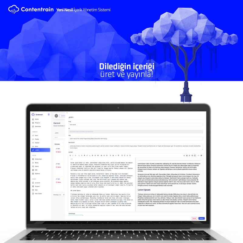 Contentrain, web sayfalarındaki içeriklerin oluşturulabilmesi ve yönetilebilmesi için geliştirilmiş kullanıcı dostu ve yenilikçi bir Headless CMS (Başsız İçerik Yönetim Sistemi)'tir.