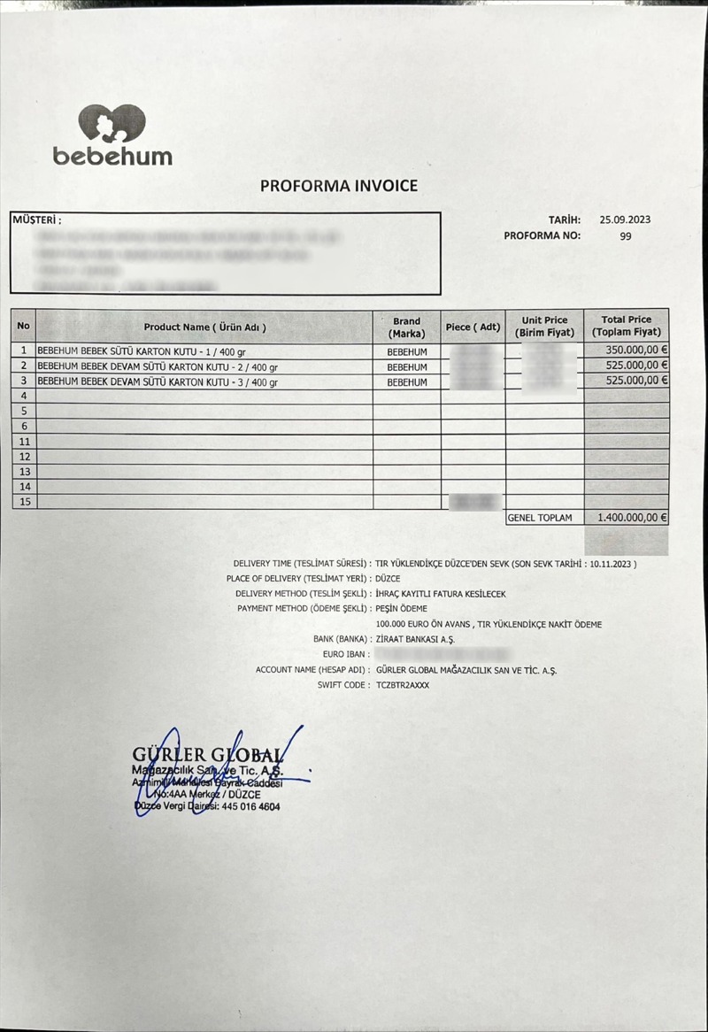 2023 Ekim - İlk büyük ölçekli ihracat anlaşması yapıldı. Her ay tekrarlanmak üzere ilk parti olan 1.484.210 USD değerinde 800.000 kutu mamanın satışı gerçekleştirildi.