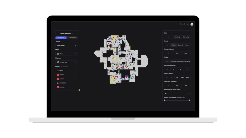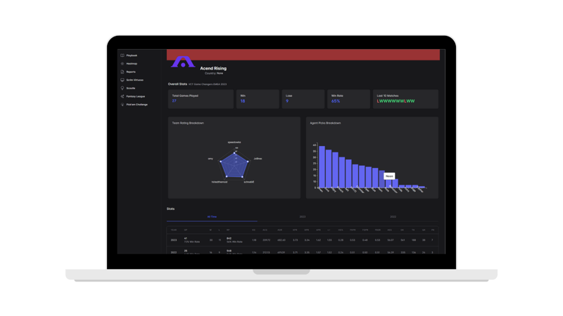 Şimdiye kadar analiz ürünlerimizle 12 ülkeden 40'tan fazla espor takımıyla çalıştık ve çalışmaya devam ediyoruz. Bu takımlar içerisinde Singapur takımı Bleed Esports, Hindistan takımı Gods Reign, Manchester United futbolcusu Casemiro'nun takımı Case Esports, EGN Esports, Amerika takımı Oxygen Esports, Avustralya takımı 95x Esports, Brezilya takımı MIBR, VCT 2023: Game Changers EMEA Series 1 turnuvası şampiyonu G2 Gozen, Evil Geniuses GC, ZETA Gaming ve çeşitli Amerikan üniversite takımları bulunuyor.
