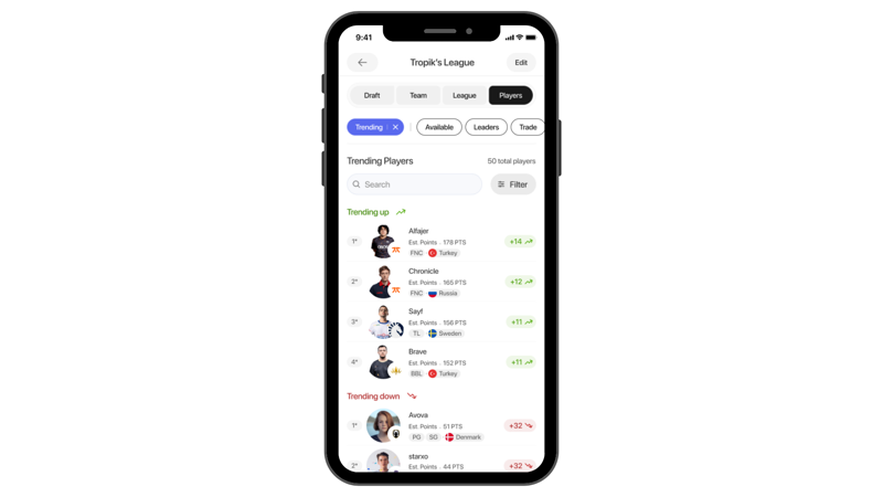 Bu kadar veri yönetirken espor takipçileri için de eşsiz bir taraftar deneyimi olarak Fantezi Ligi sunuyoruz. Fantezi Ligi kapsamında, kullanıcılar 5 oyuncu seçerek rüya takımlarını kuruyor ve oyuncuların gerçek hayattaki performanslarına dayalı olarak puan topluyor. Bu puanlar neticesinde platform sponsorlarımızdan ödüller kazanıyorlar. Temmuz ayında çıkış yapacak mobil uygulamamız ile birlikte sadece espor alanına odaklanan ilk Fantezi Ligi mobil uygulaması olacağız.
