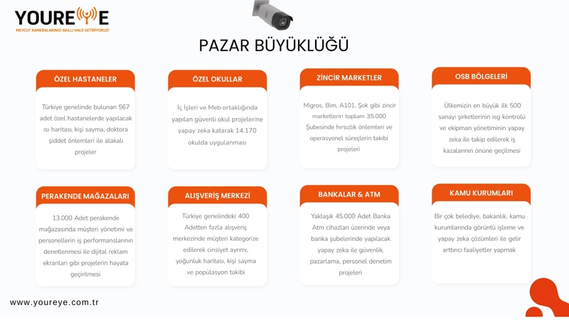 Sektörler Arası Uygulama: YourEYE’ın yenilikçi çözümleri, güvenlik, iş sağlığı ve güvenliği, perakende, üretim ve trafik yönetimi gibi birçok sektörde uygulanabilir. Bu geniş kullanım alanı, YourEYE’ın sektördeki farkını ortaya koyar.