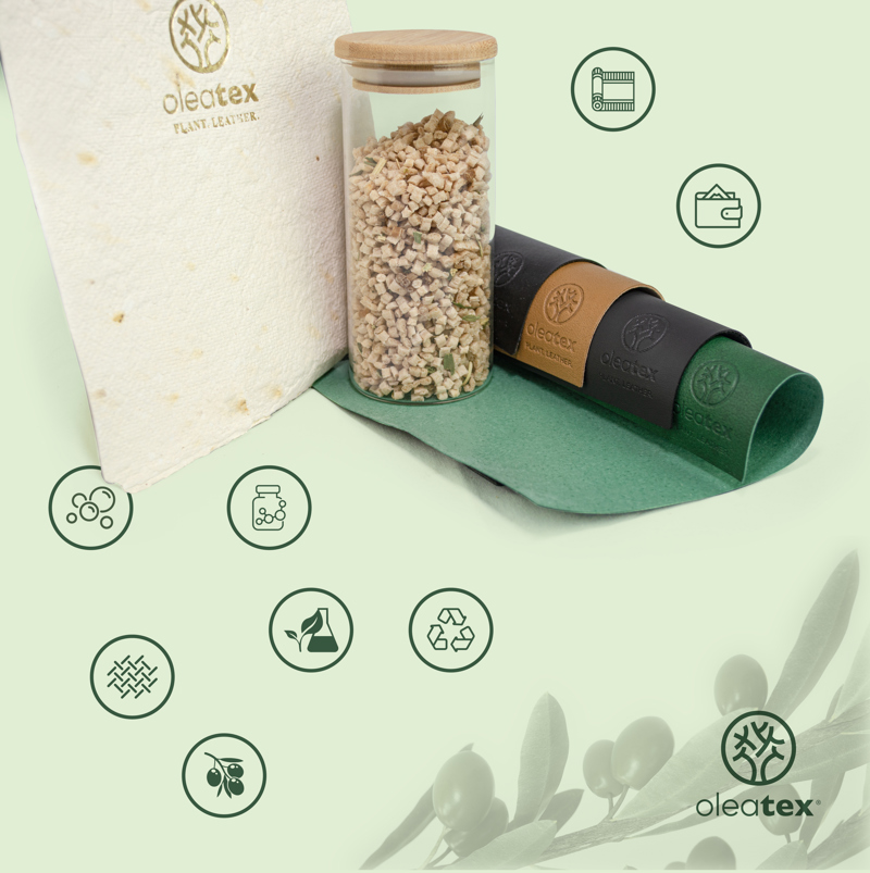 Oleago tarafından geliştirilen ve zeytin endüstrisinin atıklarından üretilen yenilikçi, vegan ve sürdürülebilir bir malzemedir. Bu ürün, deri ve suni deri gibi geleneksel malzemelere alternatif olarak moda, otomotiv ve mobilya gibi çeşitli sektörlerde kullanılabilecek bir alternatif sunmaktadır.