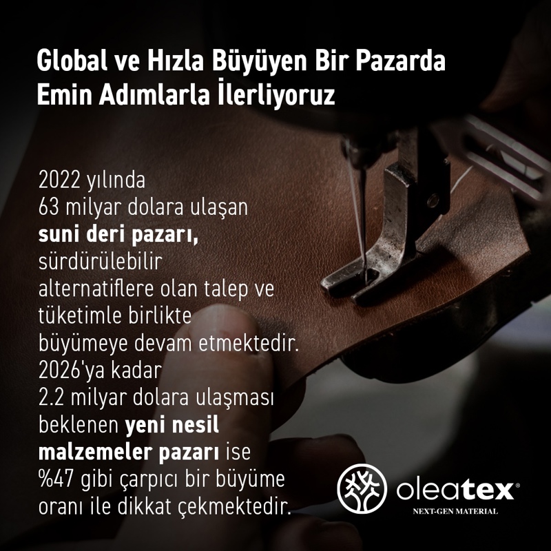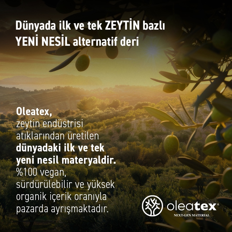 %100 vegan, organik bazlı ve çevre dostu “Yeni Nesil” Oleatex™, deri ve suni deri gibi geleneksel malzemelere sürdürülebilir bir alternatif sunmaktadır. Oleatex’in üretim süreci, çevre üzerindeki olumsuz etkileri en aza indirgemek amacıyla geliştirilmiştir. Moda, otomotiv, mobilya ve daha birçok sektörde geniş bir kullanım alanına sahiptir.