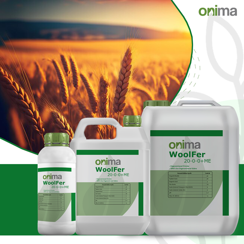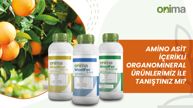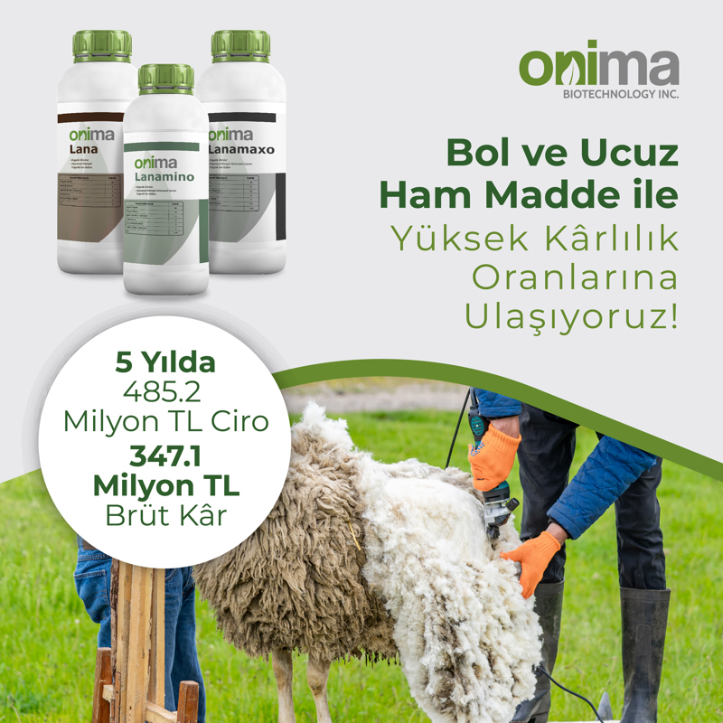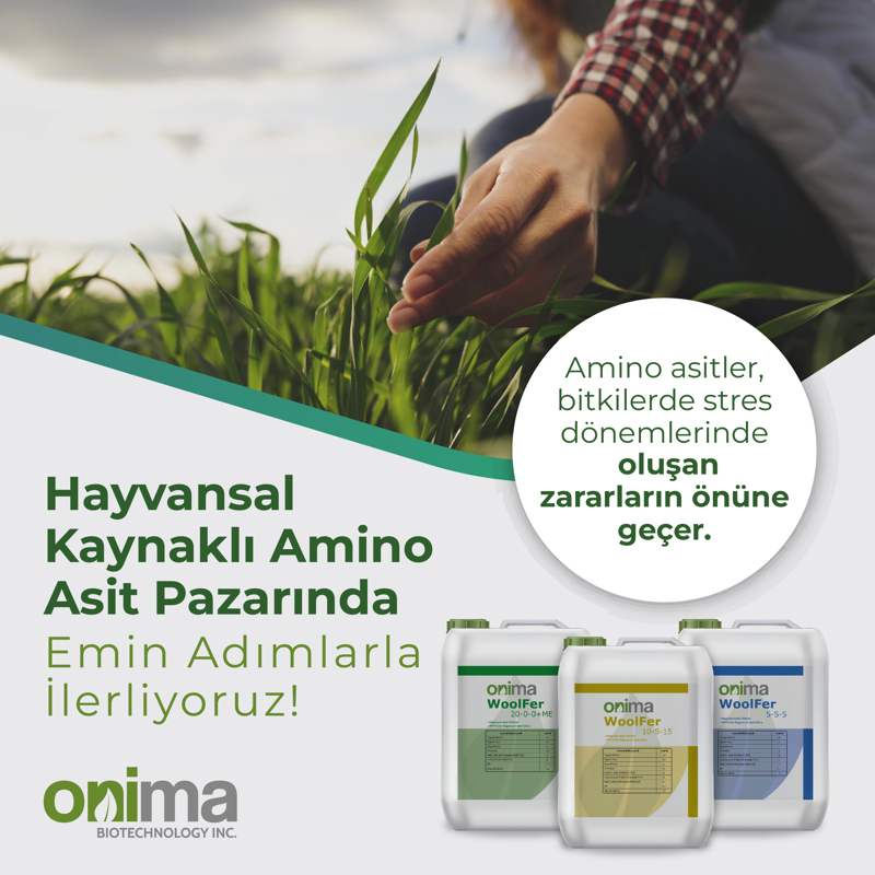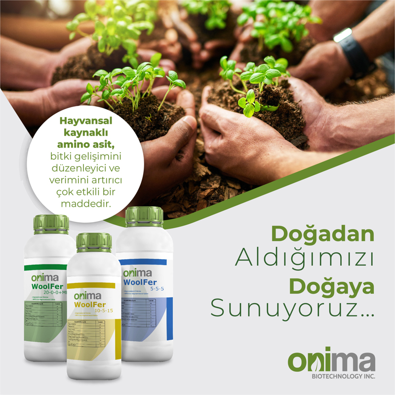 Şirketimiz özellikle koyun yünü gibi %90 proteinden oluşan bir hammaddeden, bitkilerin kökleri ve yaprakları ile alabileceği formda amino asitler üretmektedir. İçerisindeki amino asitlerin yanı sıra; organik azot, potasyum, organik madde, humik+fulvik asit gibi değerli bileşenleri içeren koyun yünü günümüzde ne yazık ki bir atık olarak değerlendirilmektedir. En büyük avantajımız bu hammaddenin ülkemizde çok bol ve çok ucuz olmasıdır. Onima aynı zamanda tavuk tüyü, mezbahane atığı, kan unu ve yosundan da amino asit üretebilmektedir: