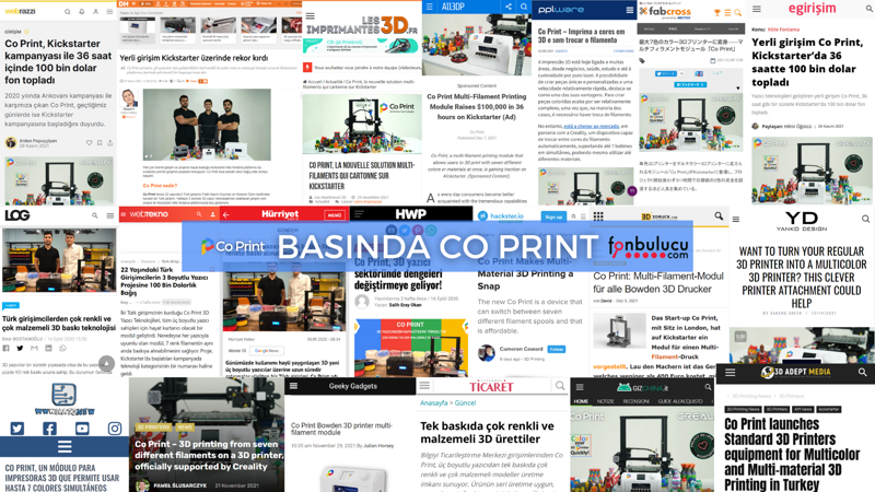 Co Print, 3D yazıcıların 7 adet filamenti bir arada kullanabilmesini sağlayan, baskı anında otomatik filament değişimi yapan, piyasadaki 3D yazıcıların baskı uçlarını akıllı hale getiren, elektronik ve mekanik aksamları olan bir 3D yazıcı ekipmanıdır. 3D yazıcılar ile çok renkli veya birden fazla malzeme türünden oluşan modeller üretmek isteyen kullanıcılara mevcut 3D yazıcılarını kullanmaya devam etmenin yanında zaman ve maliyetten tasarruf etmelerini sağlayacaktır.