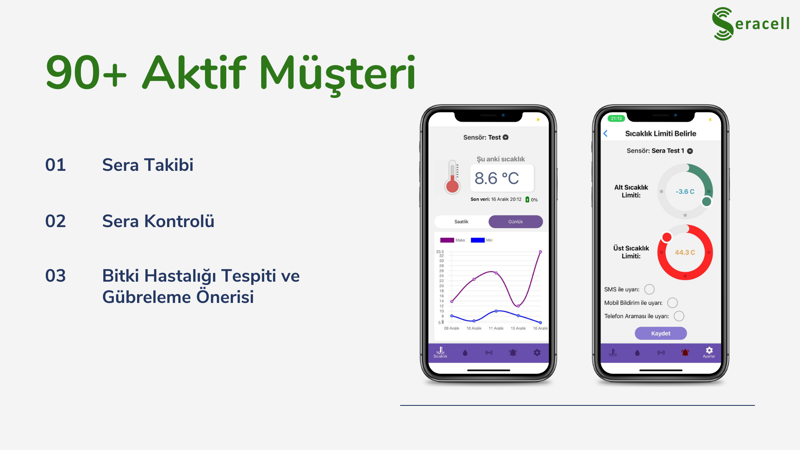 SeraCell akıllı sera sistemi bilinçli sulama ve gübreleme önerileriyle verimi artırmayı ve maliyetleri azaltmayı hedeflemektedir.