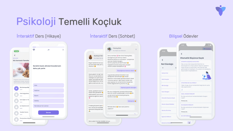 Örneğin duygusal yeme, stres, düşük motivasyon, depresyon gibi 50 den fazla program günlük dersler içerir.