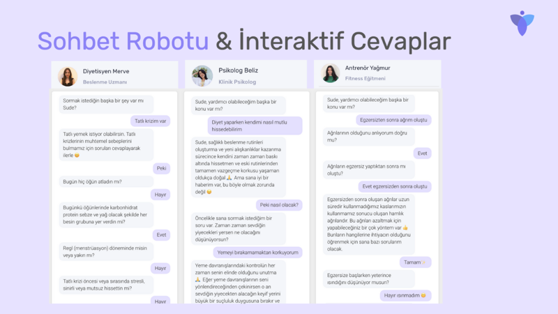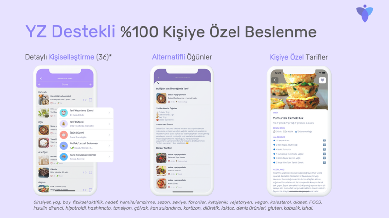 Böylece kullanıcının mevcut durumuna damak zevkine ve en uygun planı hazırlamış olur.