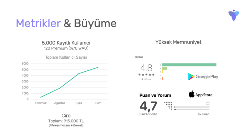 Mevcutta girişim şirketimiz Bewell Sağlıklı Yaşam Mobil uygulamasının yayına almış olup 5.000 kayıtlı kullanıcısı bulunmaktadır.