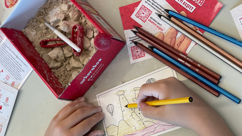 Arkerobox, kutularının içinde çekiç, büyüteç, fırça gibi kazı esnasında gerekli tüm alet ve araçların yanı sıra bilgi kartlarında qr kodlar ile çocuklara kültürel miraslarımız hakkında eğitici videolar sunmaktadır. Yine içerisinde bulunan şifre ile girilebilen online bilgi yarışması ile de çocuklar hem öğrenip hem de yarışma heyecanını yaşayarak eğlenebiliyorlar.