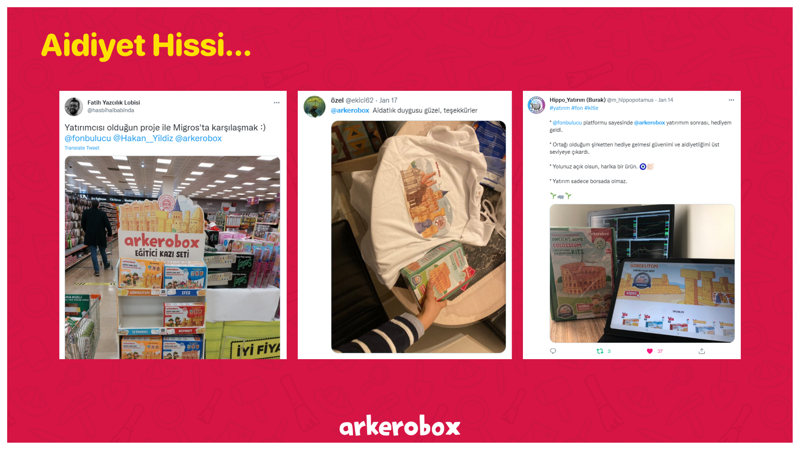 2020 Eylül ayında satışlarımıza başlayan Arkerobox, 2021 yılında da satışlarını artırarak devam etti. Yaklaşık 1 yıl sonunda toplamda 15.000 adet satış gerçekleştirildi. Kampanya sonrası 2022 yılının ilk 6 ayında ise yaklaşık 20.000 adet satış daha gerçekleştirerek 45.000 çocuğa ulaşmıştır.