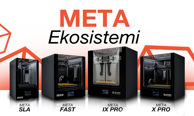 Meta 3D olarak üretmekte olduğumuz aşağıda göreceğiniz 5 farklı ürünün yanı sıra Meta Slicer çalışmamız sayesinde de hem donanım hem de yazılım anlamında şirketimizin kabiliyetlerini şekillendirmekteyiz.