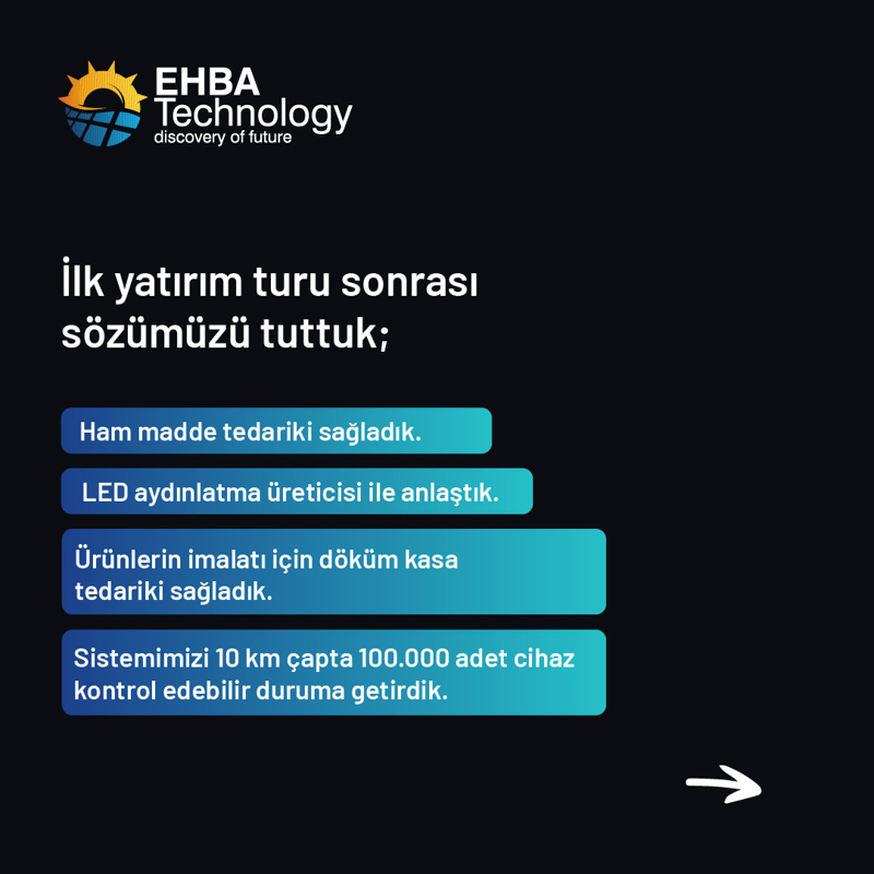 EHBA Teknoloji A.Ş. şirket kuruluşu tamamlandıktan sonra hızlı bir şekilde ilk kitle fonlama kampanyasında bahsedilen iş planları yürürlüğe sokuldu.
