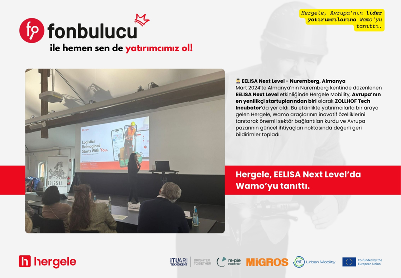 Mart 2024’te Almanya’nın Nuremberg kentinde düzenlenen EELISA Next Level etkinliğinde Hergele Mobility, Avrupa’nın en yenilikçi startuplarından biri olarak ZOLLHOF Tech Incubator’da yer aldı. Bu etkinlikte yatırımcılarla bir araya gelen Hergele, Wamo araçlarının inovatif özelliklerini tanıtarak önemli sektör bağlantıları kurdu ve Avrupa pazarının güncel ihtiyaçları noktasında değerli geri bildirimler topladı.