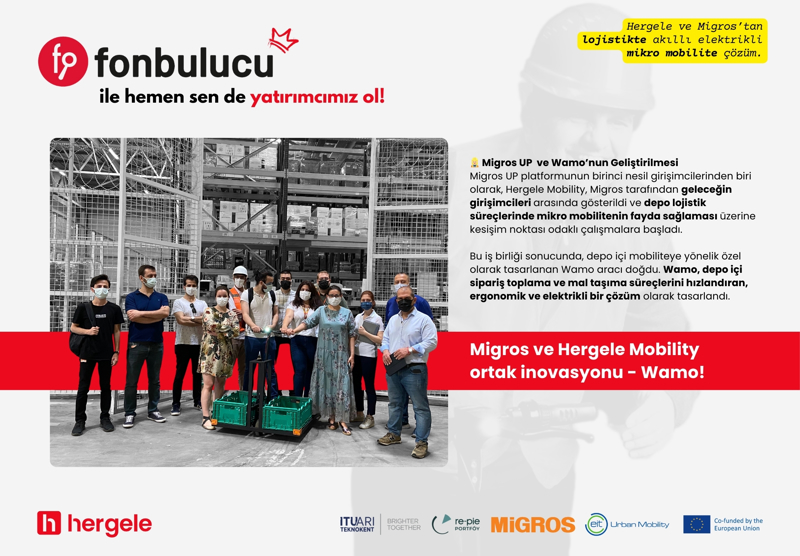 Migros UP, Migros’un geleceğin perakende ve lojistik çözümlerini desteklemek amacıyla başlattığı bir inovasyon platformudur. Migros, Hergele’ye finansal desteğin yanı sıra eğitim ve mentorluk süreçlerini de içeren yoğun bir destek sağladı. Migros UP platformunun birinci nesil girişimcilerinden biri olarak, Hergele Mobility, Migros tarafından geleceğin girişimcileri arasında gösterildi ve depo lojistik süreçlerinde mikro mobilitenin fayda sağlaması üzerine kesişim noktası odaklı çalışmalara başladı.