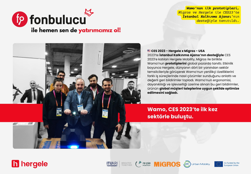 2023’te İstanbul Kalkınma Ajansı’nın desteğiyle CES 2023’e katılan Hergele Mobility, Migros ile birlikte Wamo’nun prototiplerini global pazarda tanıtma imkanı buldu. CES 2023'te yer almak, Hergele için Wamo’nun yenilikçi özelliklerini doğrudan potansiyel müşterilere gösterme, farklı sektör profesyonelleriyle birebir temas kurma ve ürünün değerini gerçek dünya uygulamaları üzerinden anlatma açısından büyük bir fırsattı.