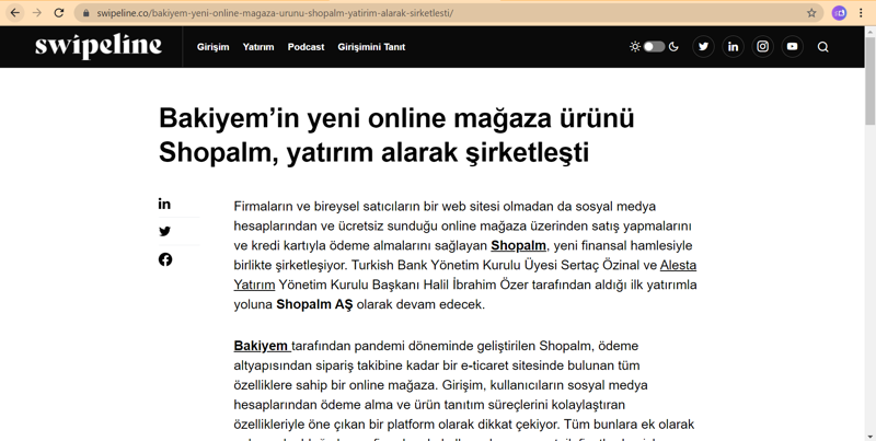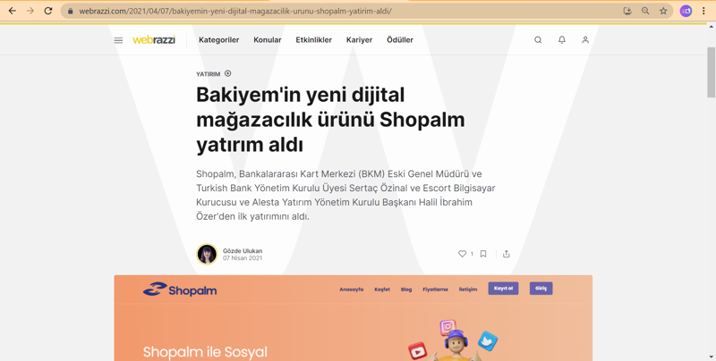 2021 yılının Şubat ayında Shopalm Ödeme Çözümleri ve Teknolojileri A.Ş olarak şirketleşmiştir. Mart ayında Avuç İçinizdeki Alışveriş mottosuyla piyasaya çıkan Shopalm, ilk müşterilerini edinmeye başlamıştır. Öncelikle girişimci kadınları hedefleyerek piyasaya çıkan Shopalm, rakiplerine göre hem avantajlı fiyatlı olması hem de ihtiyaca yönelik özellikleri ile kısa sürede büyük ilgi görmüştür. Shopalm girişimi 6 ay gibi kısa bir sürede 10 kat büyüme gerçekleştirmiştir.