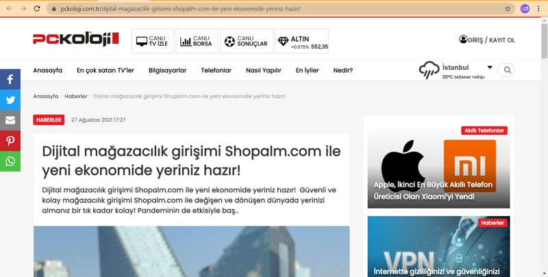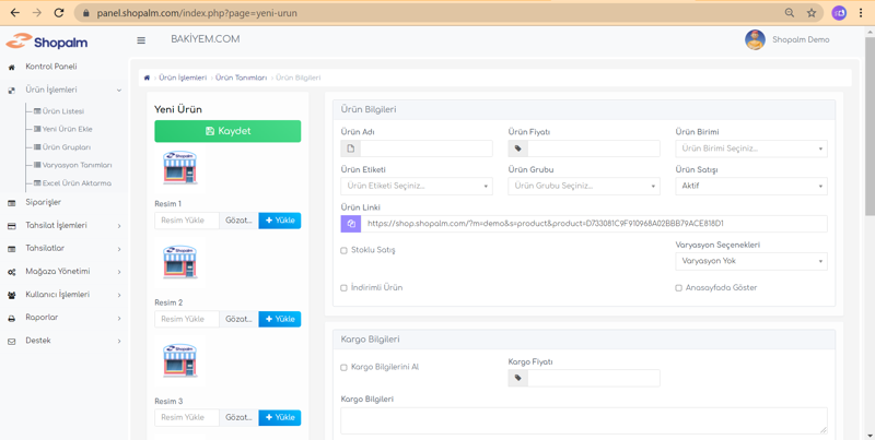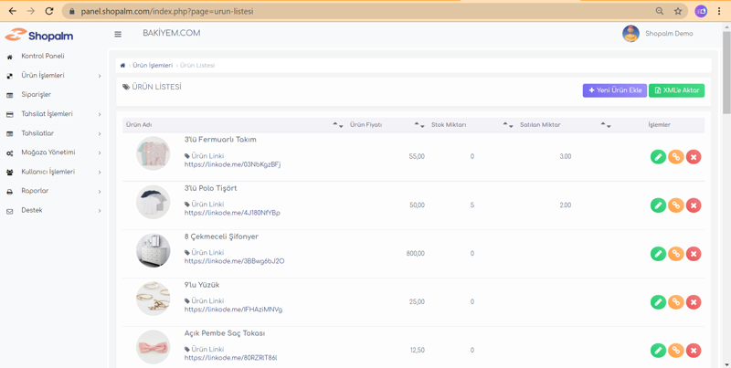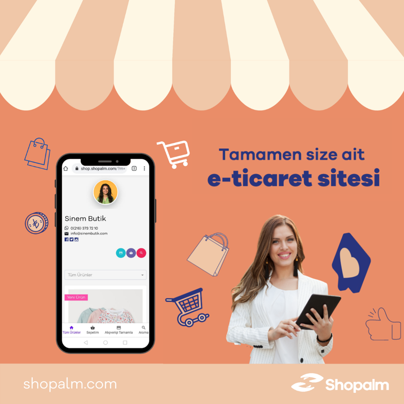 Shopalm, bireysel satıcıların hiçbir teknik bilgi ve desteğe ihtiyaç duymadan kendi online mağazalarında ve sosyal medya hesaplarında satış yapmalarını sağlayan bir e-ticaret sistemidir. Shopalm, müşterilerine sanal POS'tan sipariş takibine kadar bir e-ticaret sitesinde bulunması gereken tüm özelliklere sahip kişiselleştirilmiş online mağaza sunmaktadır.