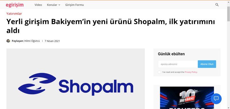 Shopalm, 2021 yılının Nisan ayında ilk yatırımını almıştır. Bankalararası Kart Merkezi (BKM) Eski Genel Müdürü ve Turkish Bank Yönetim Kurulu Üyesi Sertaç Özinal ve Krom Yazılım A.Ş. tarafından yatırım yapılmıştır.