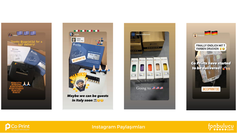 Kickstarter'da ön satışlarını yaptığımız 400 makinenin üretiminin ardından Co Print, Co Print Filament ve bayiliğini yaptığımız 3D yazıcılardan toplamda 200’den fazla satış yaptık. Yüksek çoğunluğu ihracat olan bu satışlarımızın sonunda dünyanın dört bir yanında 600’den fazla müşteriye ulaşmış olup 775.873 TL ciro elde ettik.